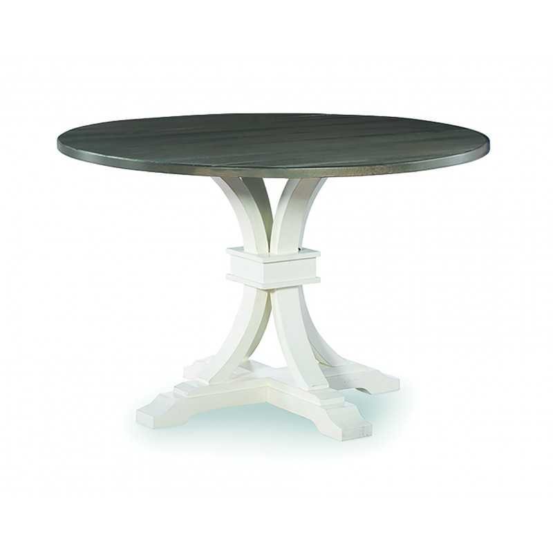 48” Round Oak Reclaimed Oak Table finished in Nickel with an elegant White Pedestal. Seats 4.