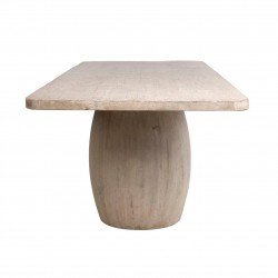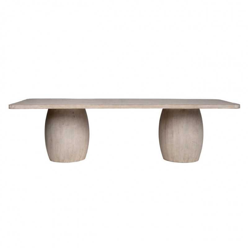 Organic form meets refined simplicity in this sculptural dining table. Crafted from reclaimed pine wood and finished in a soft Light Warm Wash, its gently curved top rests on two bold pedestal bases, creating a striking yet balanced silhouette. The natural texture and airy tone bring warmth and calm to any dining space, while the substantial design makes it perfect for gathering, entertaining, and everyday living in effortless coastal style. Comfortably seating 10 to 12 guests, it’s ideal for hosting and shared moments.