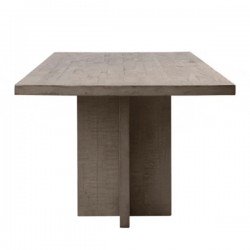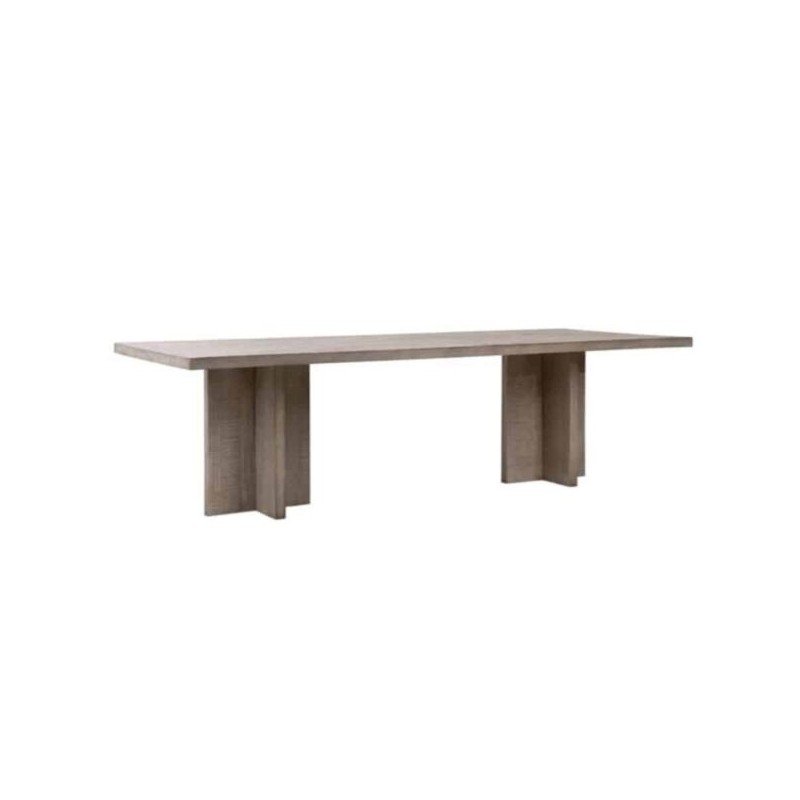 Sculptural and grounded, the Latidos Dining Table brings a refined, modern presence to your dining space. Crafted from reclaimed pine wood and finished in a soft gray wash, its clean-lined top is supported by bold, architectural pedestal bases that create a striking yet balanced silhouette. The natural grain and muted tones add depth and character, while its 88" length comfortably seats 8 - 10 guests, making it perfect for gathering, entertaining, and everyday living in effortless coastal style.