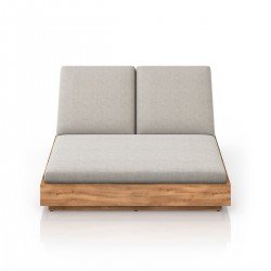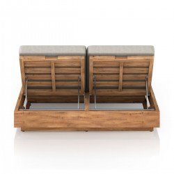 Create your own private retreat with this stylish outdoor double lounger. Crafted from sustainably sourced teak, its clean, low profile is paired with durable stone grey cushions designed for outdoor living. Adjustable backs and plush pillows let you unwind your way—perfect for poolside lounging or breezy patio afternoons.